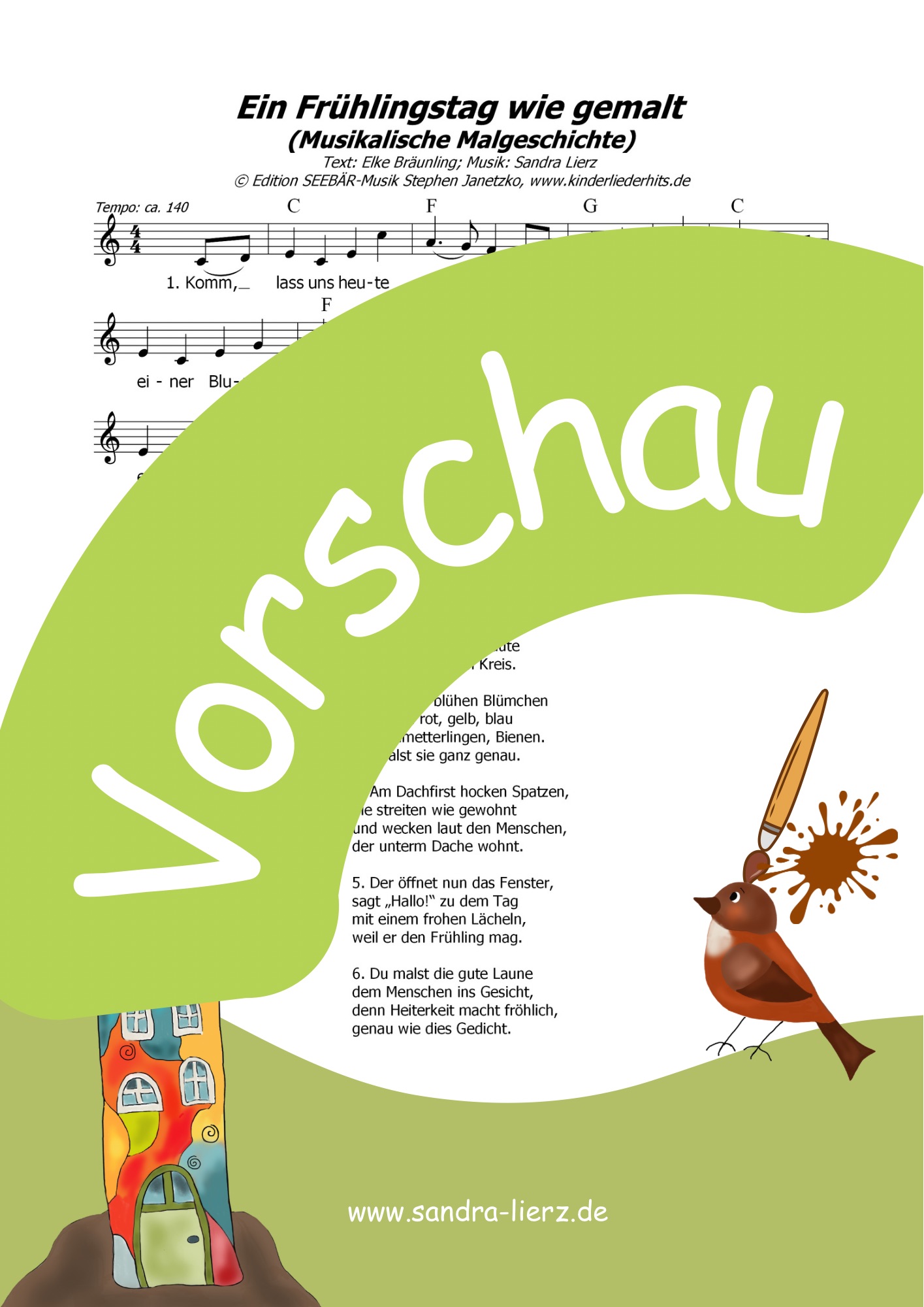 Die Noten zum Lied inklusive 12 handillustrierte Figuren zum Lied passend für die Erzählschiene, ein passendes Ausmalbild & 2 Seiten zur pädagogischen Umsetzung.