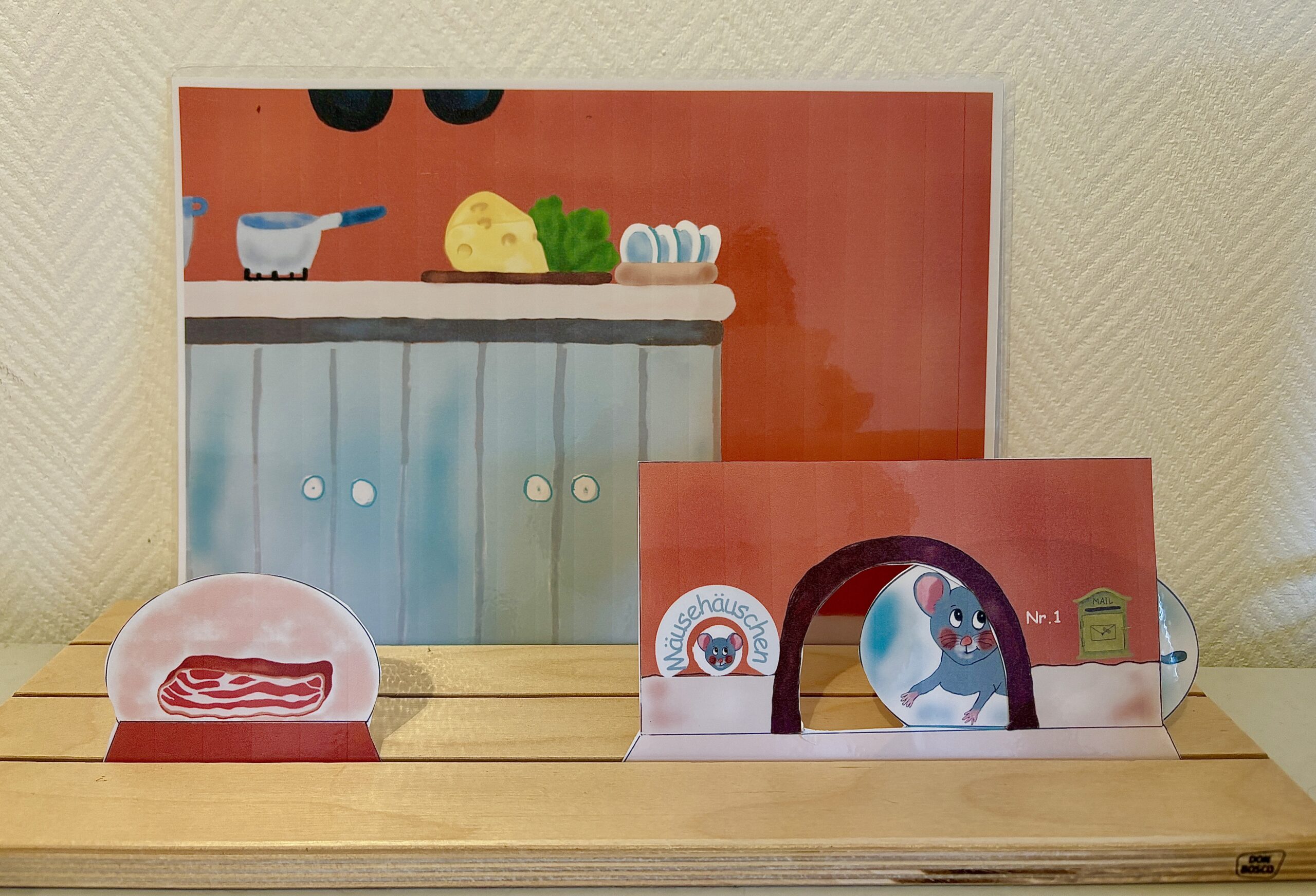 Passend zum Lied: „Ich bin ein kleines Mäuschen“ findest du hier noch ergänzend ein vierteiliges Set, bestehend aus einer DIN A 4 Bildkarte (Handillustriert) und drei Figuren für die Erzählschiene zum Nachspielen und erzählen des Liedes und der Geschichte.