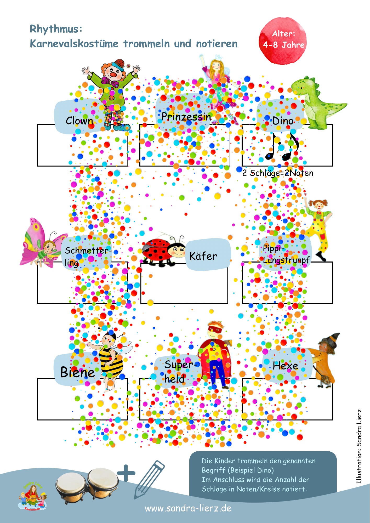 – Arbeitsblatt: Rhythmus-Karnevalkostüme Trommeln & notieren