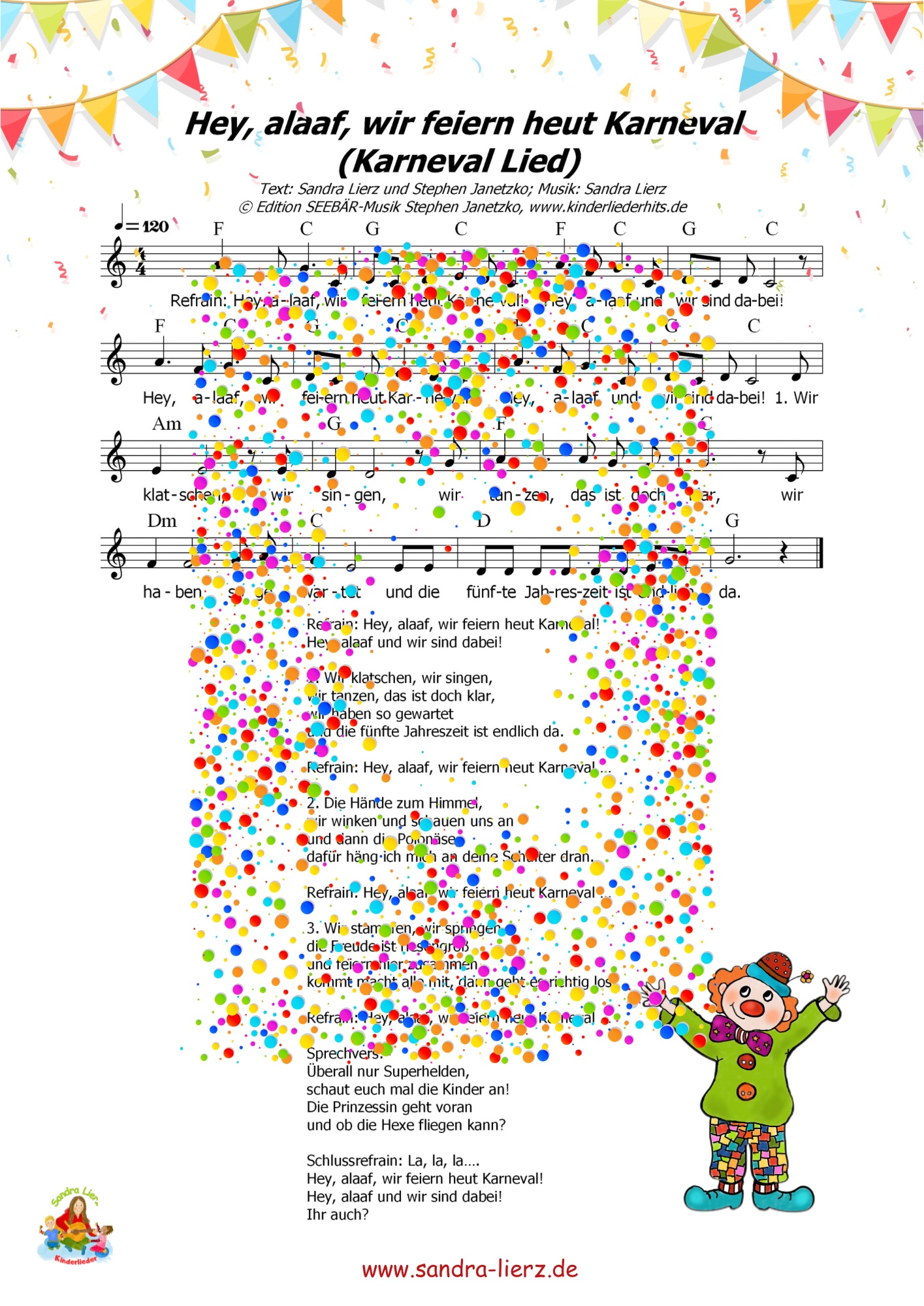 – Noten: Hey, alaaf, wir feiern jetzt Karneval (Karneval Lied)