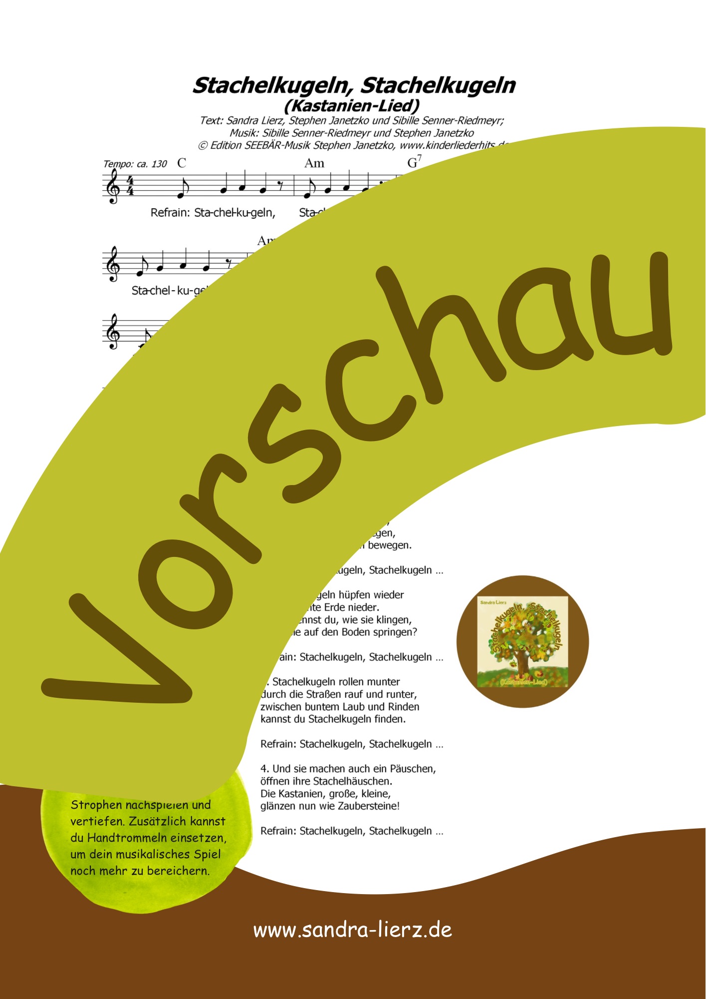 Noten: Stachelkugeln, Stachelkugeln (Kastanien-Lied) inklusive Gitarrengriffe und musikalische Umsetzungsideen