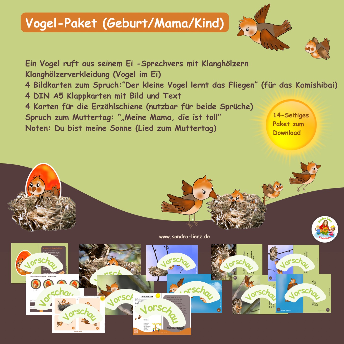 In diesem 14-Seitigen Vogelpaket findest du alles zum Thema Geburt & Mama, dass du nicht nur zu Muttertag in deiner Praxis verwenden kannst. Es eignet sich auch gut zum Thema Vögel- „Vom Ei bis zum Fliegen lernen“ und ist vor allem im Frühling und Sommer gut einzusetzen.