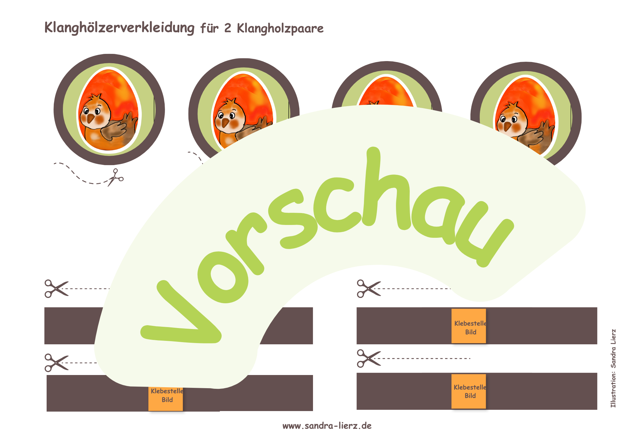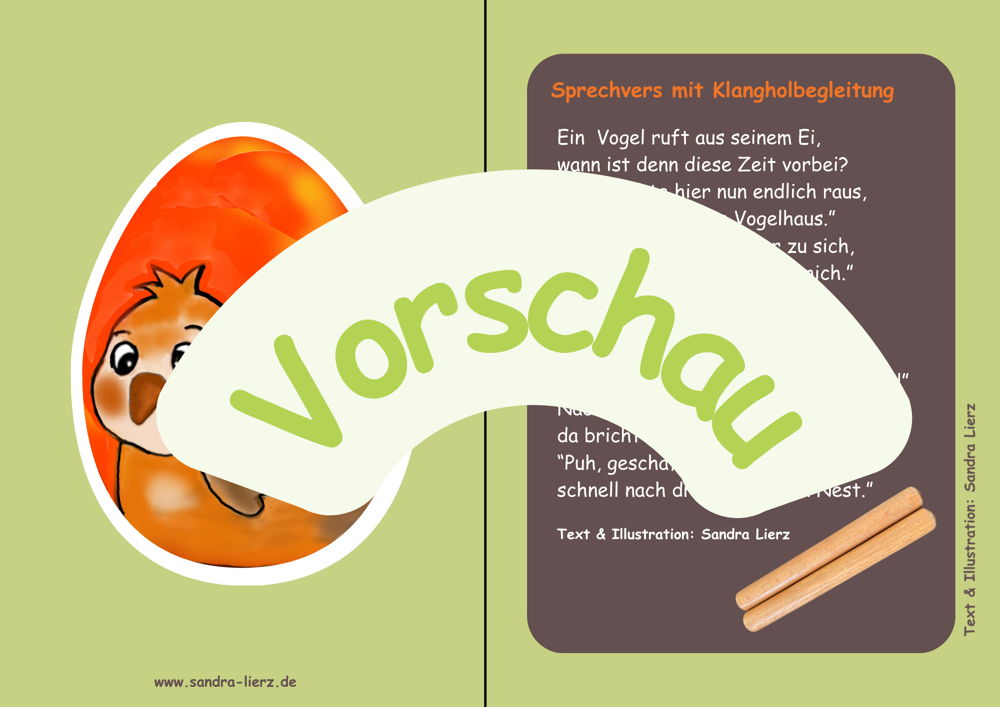 Ein Vogel ruft aus seinem Ei -Sprechvers mit Klanghölzern